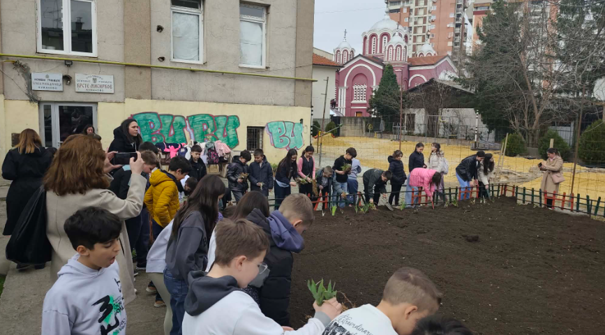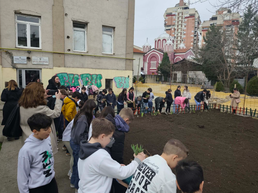 Денес учениците од V 1 одделение заедно со учениците од партнер училиштето ,,Бајрам Шабани ” ја реализираа втората активност од проектот за меѓуетничка интеграција во образованието -Животна средина и климатска акција ,,Од семе до цвет “.Учениците учествуваа во средување на еколошки катчиња во дворовите на училиштата.Преку дружење и заедничка работа засадивме садници и засеавме семиња од житни растенија.Учениците ќе го следат процесот на ‘ ртење и растење на растенија,учејќи за природата преку практичнo искуство.Преку овие активности кај учениците се стимулира процесот за развивање свесност и одговорност за заштита на животната средина